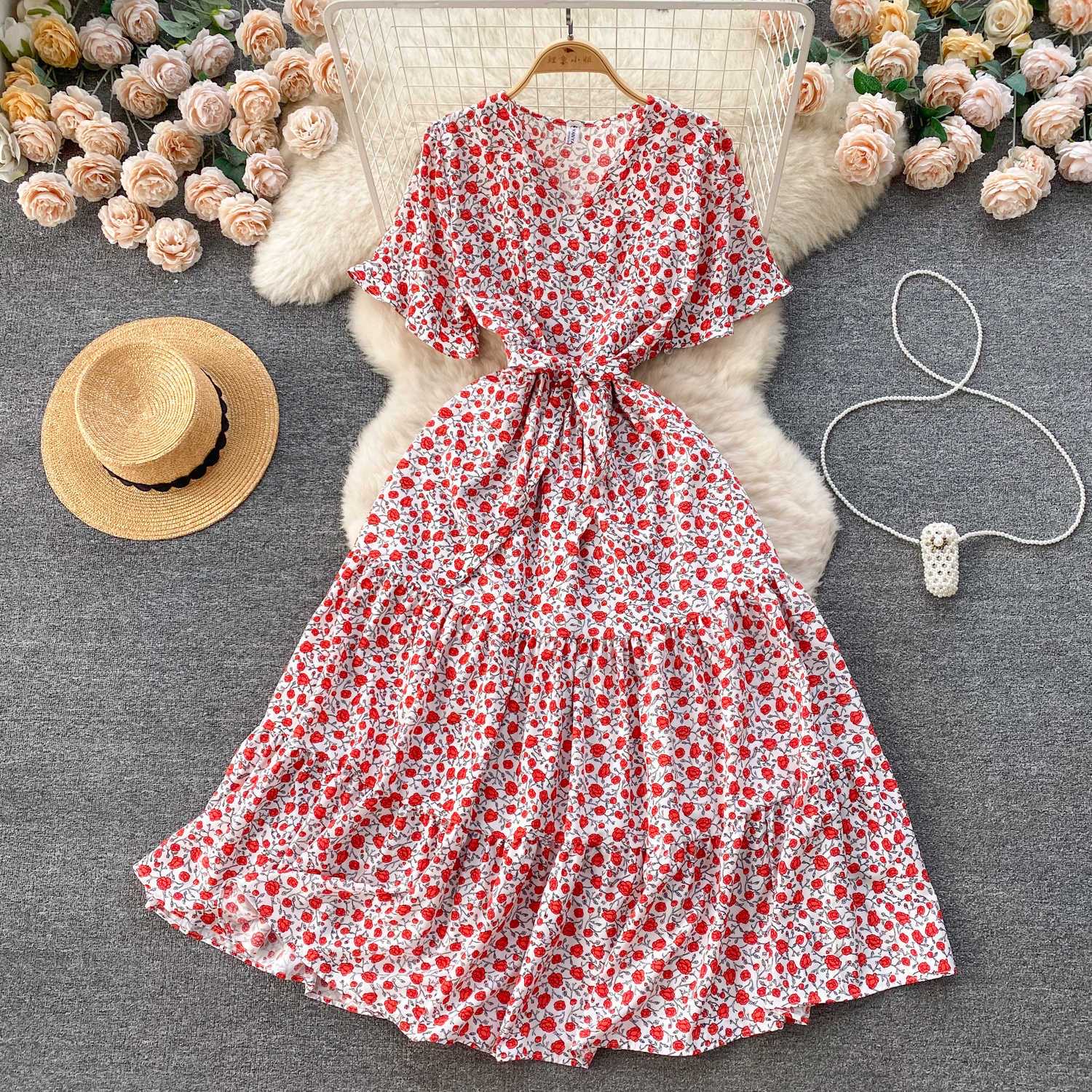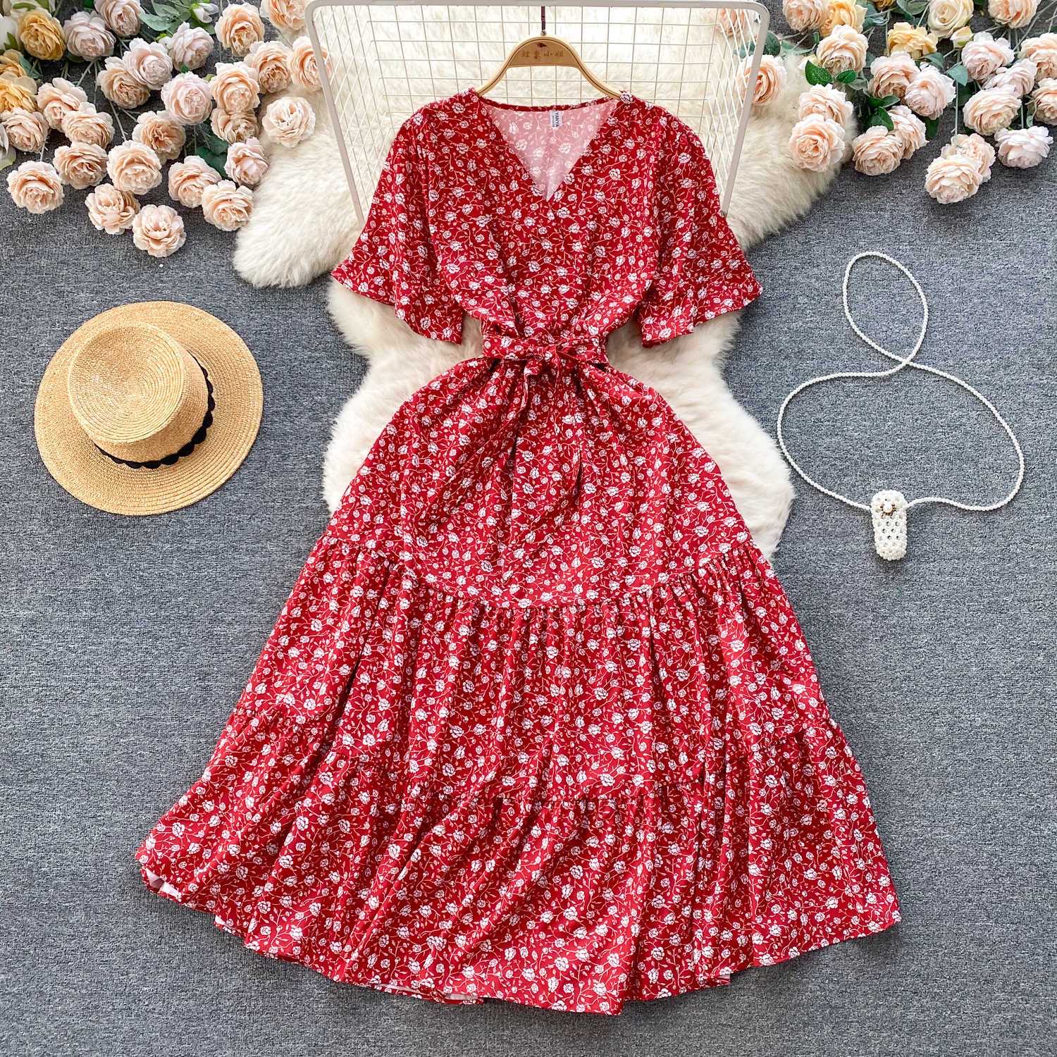 Machine wash summer dress is comfortable and yet elegant This is women summer dresses with pockets. Both sides have nice pockets are great for carry your phone or useful items. Flattering cute ruched bust v-neck and gathered skirt features add some pizzazz and give the dress personality. It hides you imperfections just right.